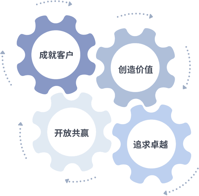 成就客户是一切决策的出发点,,,,创造价值是衡量所有工作的标准,,,追求卓越是赏金女王做事做人的态度,,,,开放共赢是赏金女王的格局也是最终的结果。。。。价值观的齿轮环环相扣,,推动着组织里的每个人不断向前。。
